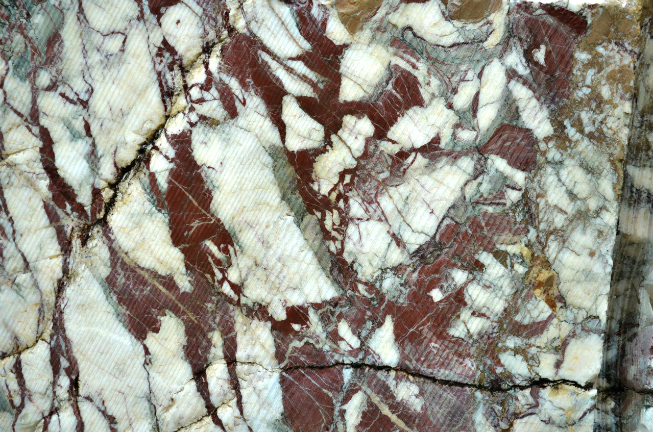 В Новосибирской области имеется несколько месторождений облицовочного камня — мраморизованного известняка, который часто называют просто мрамором. Эти месторождения сейчас не работают или работают по мере необходимости. На Петенёвском месторождении разрабатывают силурийские (возраст около 440 миллионов лет) мраморизованные известняки, образовавшиеся в мелководном море на салаирской окраине Сибирского палеоконтинента. В них нередко можно заметить остатки скелетов одних из наиболее распространённых животных того периода — морских лилий (криноидей). Для этих известняков характерны вариации красных и коричневых оттенков, ветвящиеся светлые или красноватые прожилки разной толщины (рис. 5).